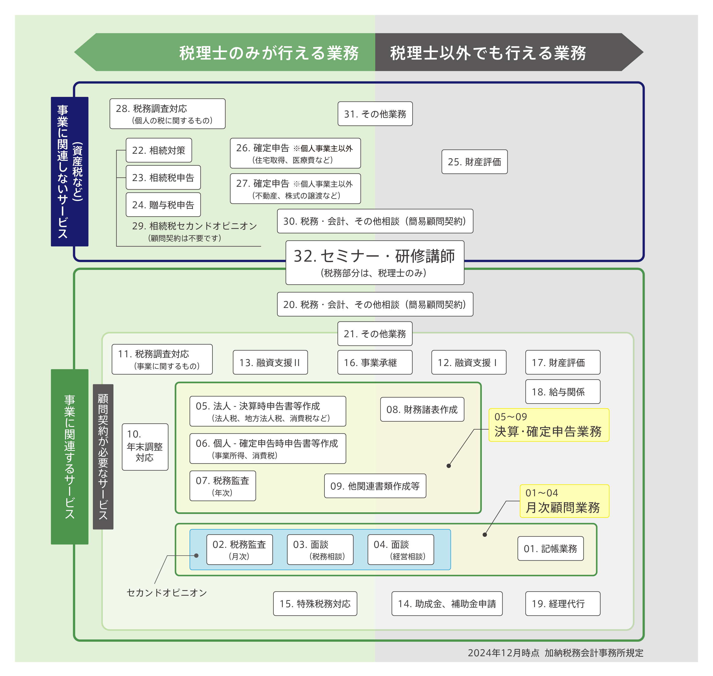 税理士事務所のサービスは、おおよそ下記のようになります。