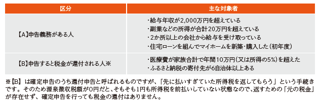 3. 確定申告が必要な人・申告すると税金が還付される人